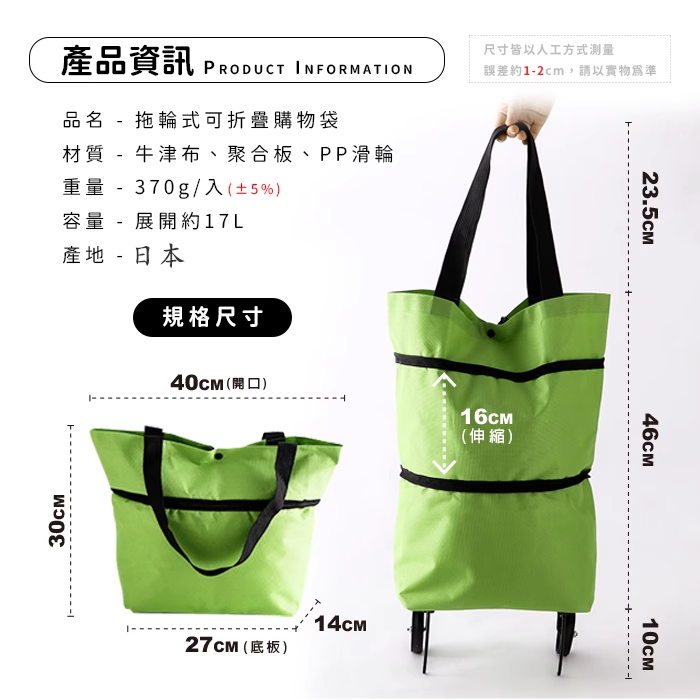 4分鐘前【爆款折疊購物車袋手拉車】手提袋購物車隨意切換一物兩用,容量大可裝多物品 省力貼心 環保生活從我做起 - 【買一送一 NT$899二入組】