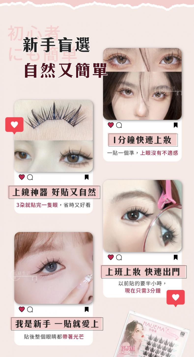 5分鐘前【限時買一送一】日本爆款吸睛NJM懶人睫毛,一秒粘貼 輕盈超細梗 自然不做作~轉為亞洲人眼型設計,上班 / 上學 / 約會 快速上妝秒出門 - 【超值組合 買二送二】NJM懶人假睫毛四入組(一秒粘貼 輕盈超細梗 自然不做作)-NT$ 990