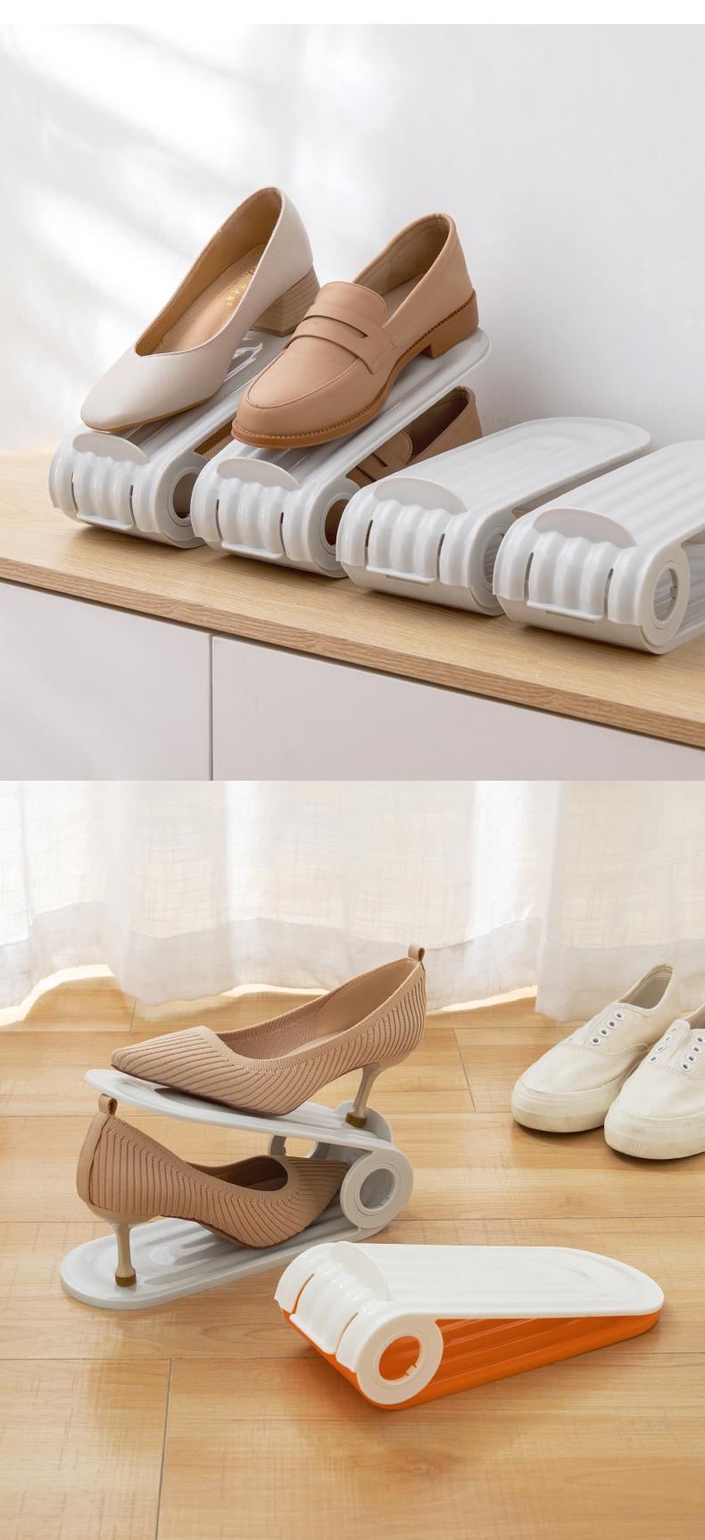 半小時前鞋櫃老是不夠放??試試這個【雙層鞋托架】 鞋櫃裡不僅整齊好看,還節省了很多空間! - 【雙層鞋托】(加厚可調節)NT$998(十個)