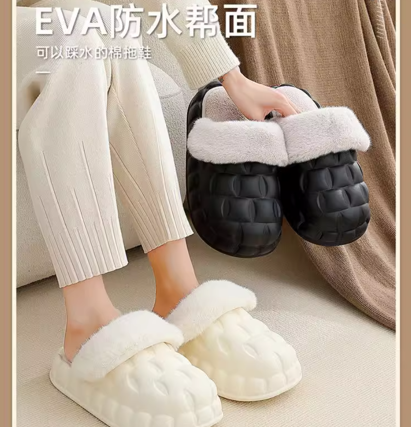 5分鐘前踩屎感可拆卸棉拖鞋女冬季防水室內家居厚底防滑情侶家用毛絨保暖棉拖男 - 【任購3件】三入組-NT$1199
