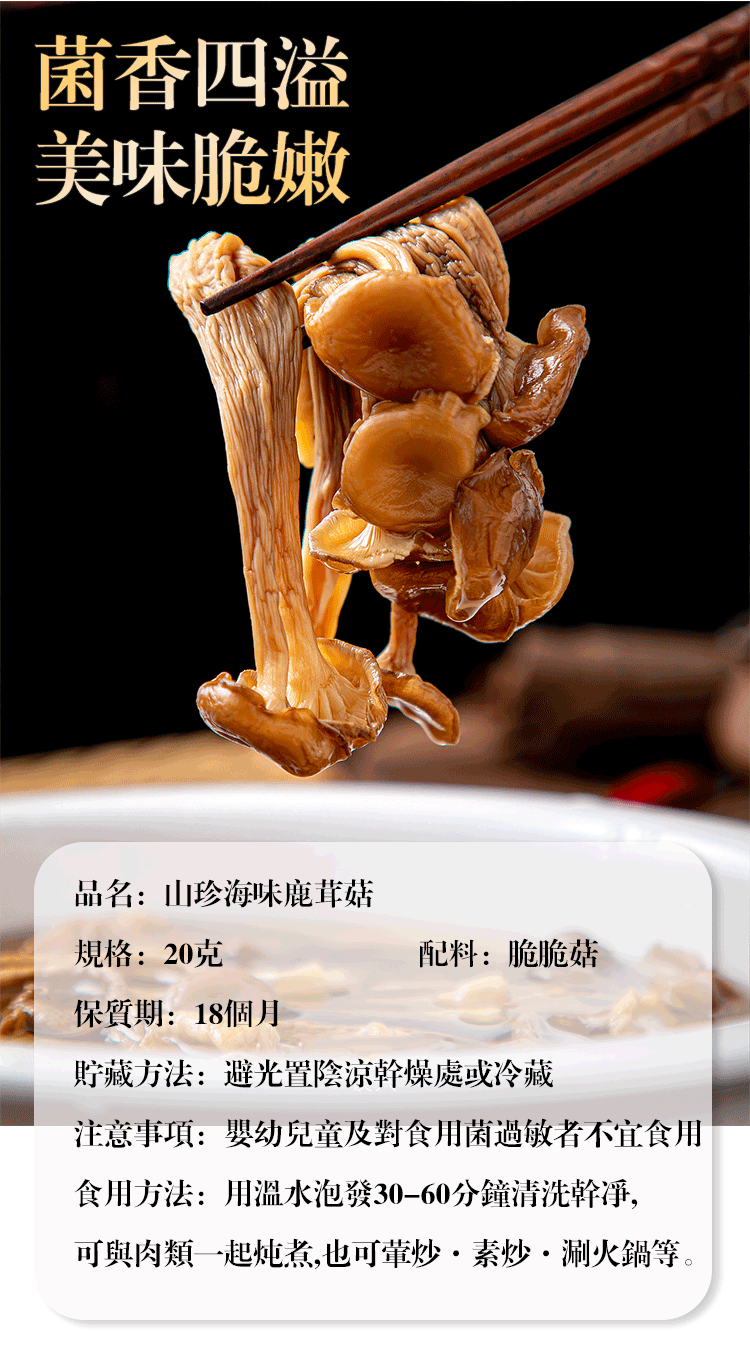 15分鐘前 【煲湯炒菜下飯必備】山珍海味鹿茸菇 #高山食材 #滋補養生 - 5入組-NT$998