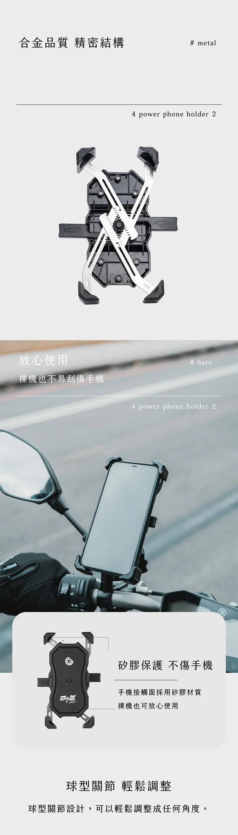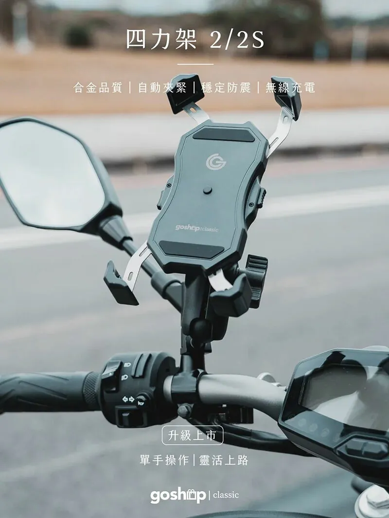 5分鐘前GC 四力架2 / 2s 單手操作 快人一步 最新四力架2 Pro 自動夾緊 USB充電 無線充電兩用機車手機架 外送必備 接單神器 - 四力架2s(通用快充版)一入組NT$1,080