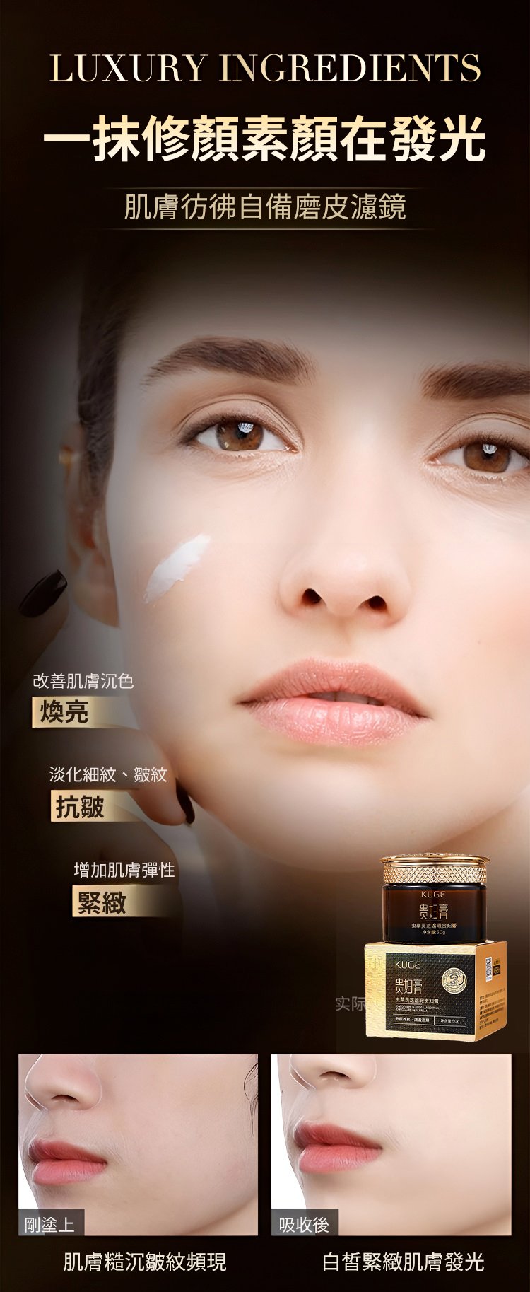 5分鐘前酷格蟲草靈芝遮瑕貴婦膏滋潤保濕提亮緊緻乳霜 - 【盡享裝】買二送三---5入組NT$1198
