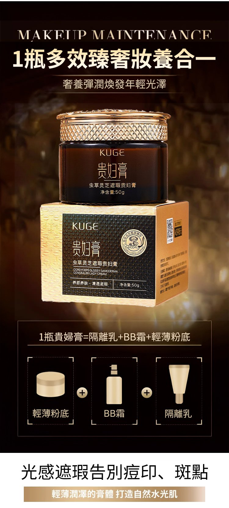 5分鐘前酷格蟲草靈芝遮瑕貴婦膏滋潤保濕提亮緊緻乳霜 - 【68%OFF】買一送二---3入組 NT$899