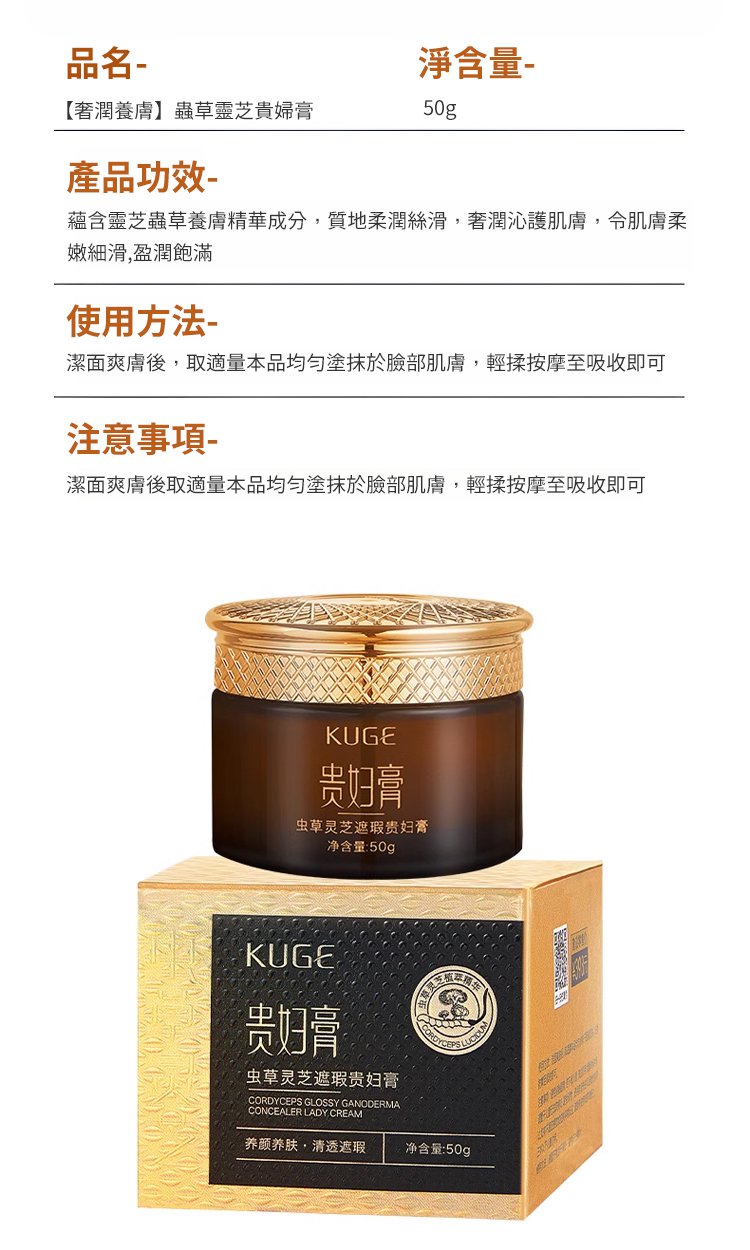 4分鐘前酷格蟲草靈芝遮瑕貴婦膏滋潤保濕提亮緊緻乳霜 - 【盡享裝】買二送三---5入組NT$1198