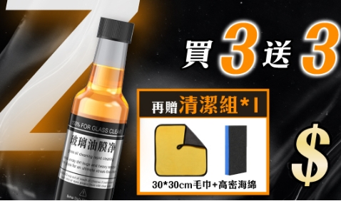4分鐘前視線不清晰/行車不安全/一罐輕鬆去油膜 油膜玻璃淨 /水珠自然滑下不殘留/倒入玻璃水箱/立刻見效 - 【個人組】買3送3 / 贈清潔品*1NT$799