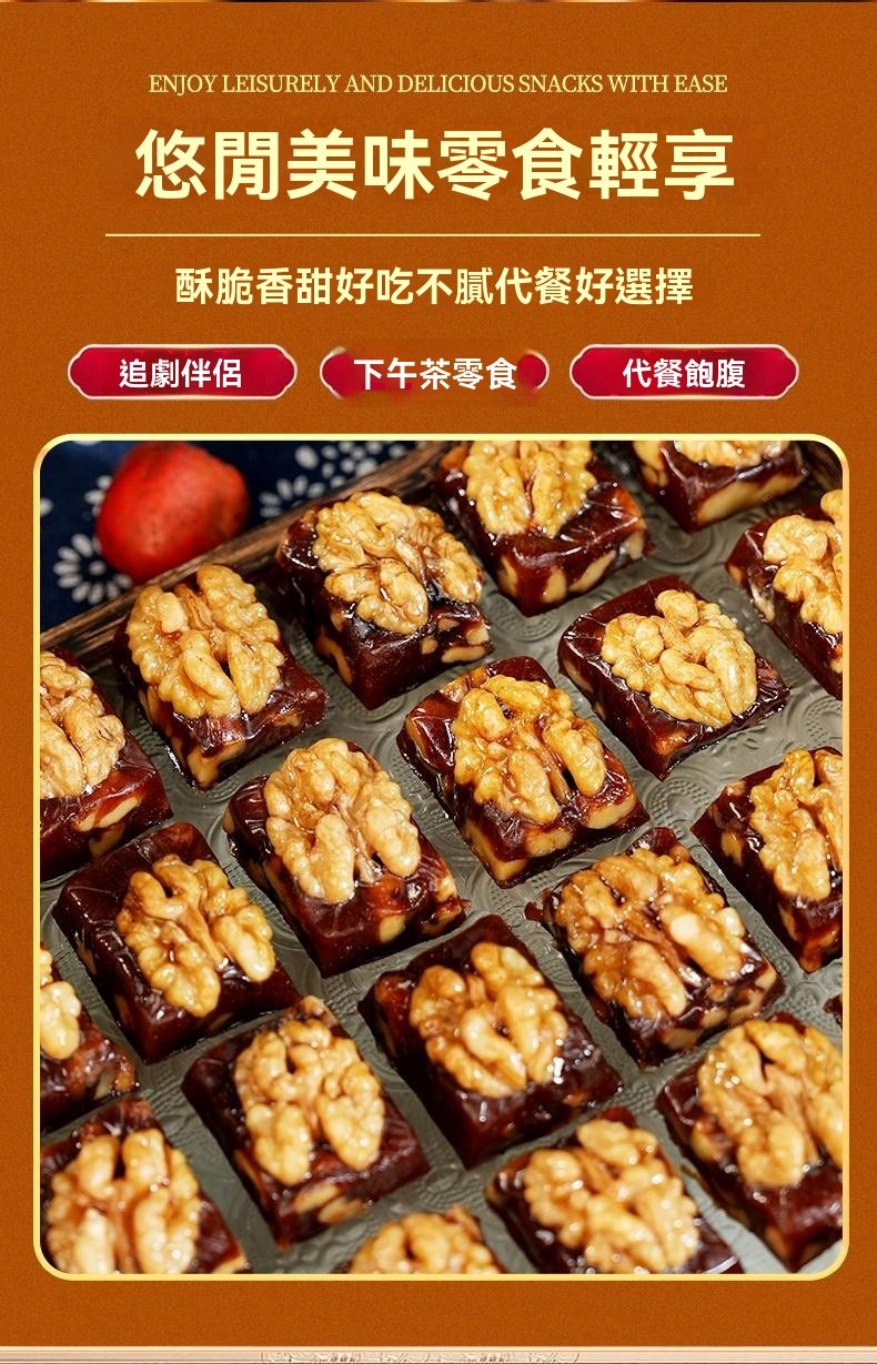 半小時前【爆款熱賣】山楂烤核桃糕真材實料健康營學生養代餐早餐好吃飽腹下午茶 - 【500g嘗鮮價 限時下殺】NT$998