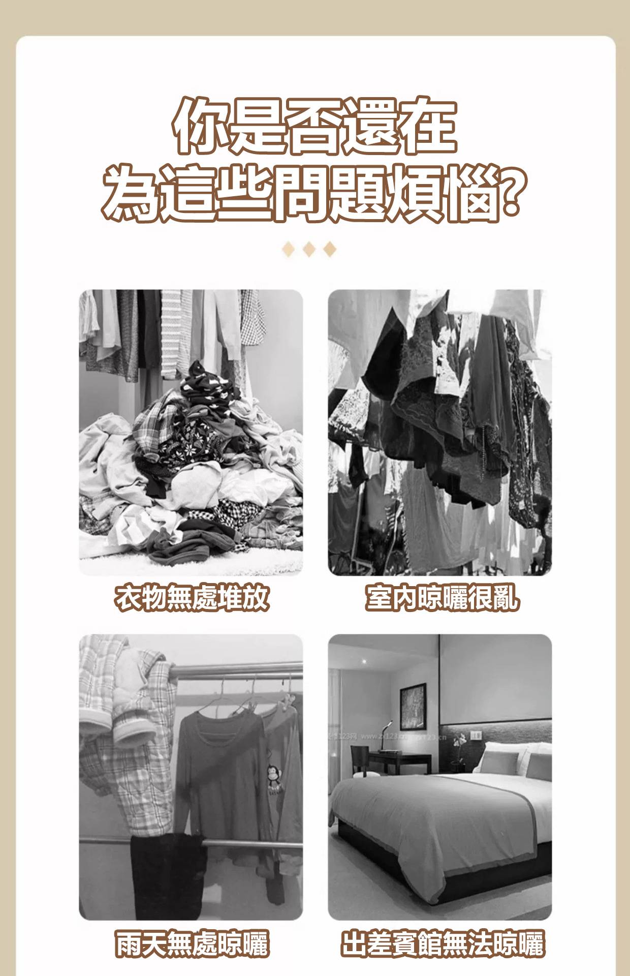 12分鐘前 【多功能折疊晾衣架】 便攜旅遊酒店晾曬掛架 出差必備晾衣神器! - 【超值特惠】買一送三 4入組NT$998
