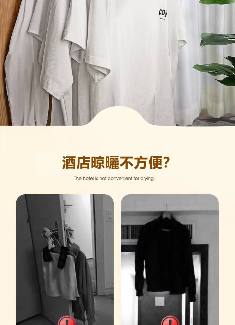 4分鐘前 【多功能折疊晾衣架】 便攜旅遊酒店晾曬掛架 出差必備晾衣神器! - 【破盤嗨購】買三送九 12入組NT$1398